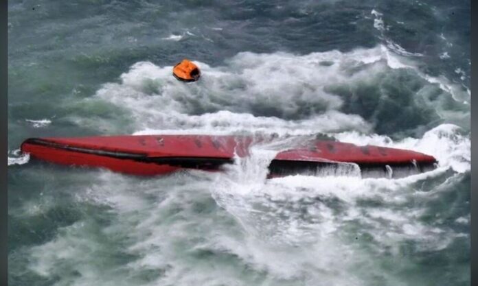 Το πλοίο ανατράπηκε ολοσχερώς τη στιγμή που οι διασώστες έφτασαν στο σημείο, είπε η ακτοφυλακή. Πλάνα στο δίκτυο NHK έδειξαν το πλοίο εντελώς ανάποδα και μια φουρτουνιασμένη θάλασσα και το κόκκινο κύτος του πλοίου που αναποδογύρισε.