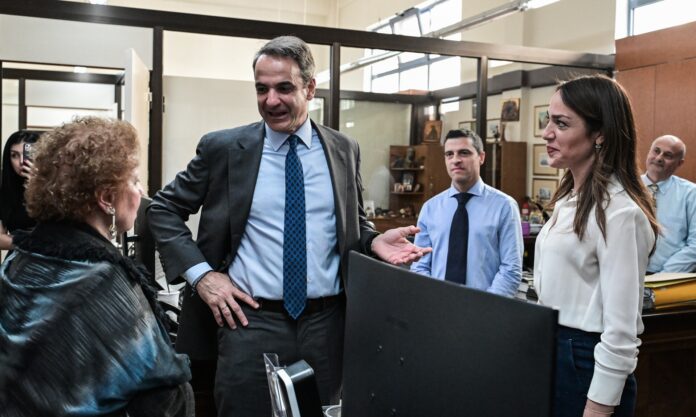 Η υπουργός Εργασίας και Κοινωνικής Ασφάλισης, Δόμνα Μιχαηλίδου, μετά τη συνάντηση που είχε σήμερα στο γραφείο της με την υπουργό Τουρισμού, Όλγα Κεφαλογιάννη.