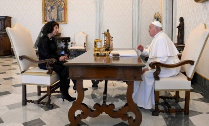 Σε ανάρτησή της μετά τη συνάντηση με το Πάπα στο Βατικανό, τον ευχαρίστησε εκ μέρους όλων των Μακεδόνων πολιτών (!) για τη σταθερή υποστήριξή του στην ευρωπαϊκή προοπτική των Δυτικών Βαλκανίων.