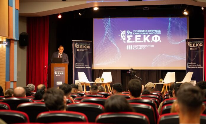 Το Μητροπολιτικό Κολλέγιο διοργάνωσε, για 9η χρονιά, το Συμπόσιο Έρευνας και Καινοτομίας Φοιτητών (Σ.Ε.Κ.Φ.) με θέμα «Έρευνα-Καινοτομία-Επιχειρηματικότητα: Ο ρόλος των Πανεπιστημίων στο οικοσύστημα καινοτομίας». Όπως κάθε χρόνο, ο δημοφιλής θεσμός, που πραγματοποιήθηκε στο Campus Θεσσαλονίκης (και μεταδόθηκε σε όλα τα Campuses του Κολλεγίου και στο ευρύτερο κοινό μέσω live streaming), υπό την αιγίδα της Περιφέρειας Κεντρικής Μακεδονίας, έδωσε την ευκαιρία σε φοιτητές/τριες και αποφοίτους του Κολλεγίου να παρουσιάσουν ερευνητικά έργα και καινοτόμες ιδέες – αναδεικνύοντας τον ρόλο της έρευνας και της καινοτομίας στην προσωπική και επαγγελματική ανάπτυξη της νέας γενιάς, αλλά και την πρόοδο της επιστήμης και της κοινωνίας.