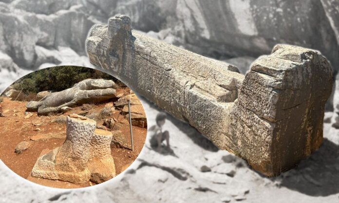 Με μήκος 11 περίπου μέτρα και βάρος πάνω από 60 τόνους, μόνο να φανταστούμε μπορούμε με ποιον τρόπο γινόταν η μεταφορά αυτών των κολοσσιαίων έργων, από τα λατομεία μέχρι τη θάλασσα και τη φόρτωσή τους στα καράβια. Χρονολογείται δε προς τα τέλη του 6ου αιώνα π.Χ. Φαίνεται σχεδόν τέλειος, οπότε το γιατί εγκαταλείφθηκε στο σημείο που κατασκευάστηκε, αποτελεί μυστήριο.