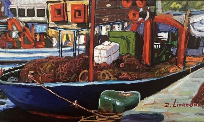 Τα πλοία της Ζήνας Λιναρδάκη υπάρχουν και γιορτάζουν στο λιμάνι. Είτε είναι φρεσκοβαμμένα στα ναυπηγεία, είτε δεμένα στην προβλήτα περιμένοντας να φορτώσουν ή να ξεφορτώσουν, είτε είναι ρυμουλκά ή μικρά ψαροκάικα γεμάτα με αλιευτικά εργαλεία, είτε ακόμη γέρικα και σκουριασμένα όλα τους απεικονίζονται με ζωντάνια. Αξιοποιεί ελεύθερα και ισορροπημένα την πλούσια χρωματική της παλέτα, δημιουργώντας ζωντανές, γεμάτες παλμό και αισιοδοξία συνθέσεις που αποπνέουν την αύρα του λιμανιού.