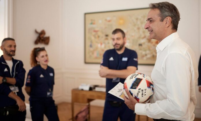 Ο Πρωθυπουργός, Κυριάκος Μητσοτάκης, συναντήθηκε το πρωί (17/09) στο Μέγαρο Μαξίμου με την Εθνική Ομάδα Ποδοσφαίρου Αστέγων, που θα λάβει μέρος στο Παγκόσμιο Κύπελλο Αστέγων, το οποίο θα διεξαχθεί το διάστημα 21 – 28 Σεπτεμβρίου, στη Σεούλ της Νότιας Κορέας.