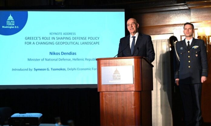 Στο 6ο Φόρουμ των Δελφών στην Ουάσιγκτον, ο Υπουργός Εθνικής Άμυνας της Ελλάδας, Νίκος Δένδιας, πραγματοποίησε την κεντρική ομιλία με θέμα «Ο ρόλος της Ελλάδας στη διαμόρφωση της αμυντικής πολιτικής σε ένα μεταβαλλόμενο γεωπολιτικό τοπίο».
