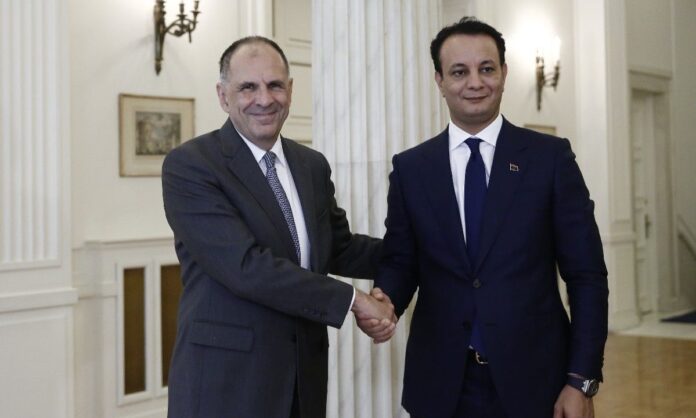 Στη συνέχεια, ο Γιώργος Γεραπετρίτης υποδέχθηκε τον Μπελγκασέμ Χαφτάρ στο υπουργείο Εξωτερικών.