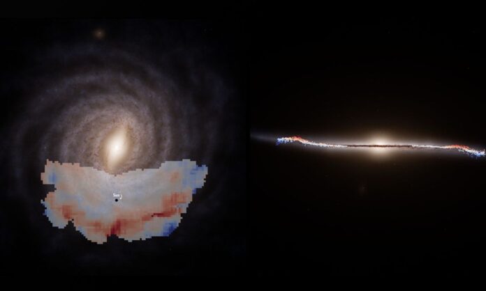 Η ανακοίνωση του ESA παρομοιάζει τη γαλαξιακή διαταραχή με κυματισμούς λίμνης που προκαλεί μια πέτρα όταν πέσει στο νερό.
