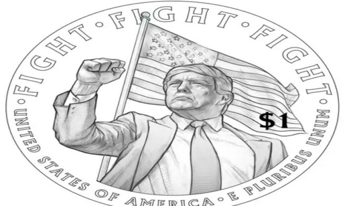 Σύμφωνα με προσχέδια που αναρτήθηκαν στην πλατφόρμα Χ και αναδημοσιεύτηκαν από το υπουργείο Οικονομικών, το κέρμα του ενός δολαρίου ενδέχεται να απεικονίζει τον Τραμπ προφίλ και την επιγραφή Liberty (Ελευθερία) με κεφαλαία γράμματα. Στην άλλη πλευρά θα εικονίζεται με τη γροθιά υψωμένη, μπροστά σε μια αμερικανική σημαία και τη φράση «Fight, fight, fight» («Αγωνιστείτε»).