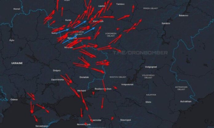 Για άλλη μια βραδιά εκατοντάδες μη επανδρωμένα αεροσκάφη εκτοξεύθηκαν από την Ουκρανία κατά της Ρωσίας, με το πρακτορείο ειδήσεων RIA να αναφέρει ότι οι μονάδες αντιαεροπορικής άμυνας της χώρας κατέστρεψαν 184 ουκρανικά drones κατά τη διάρκεια της νύχτας από Δευτέρα προς Τρίτη (07/10).