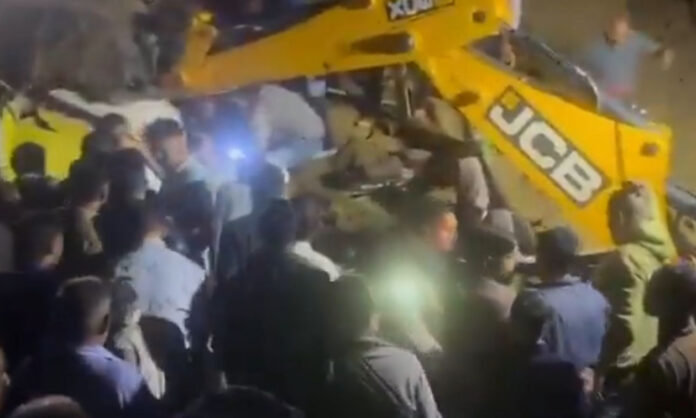 Εικόνες του ANI έδειξαν τα συντρίμμια του λεωφορείου να βρίσκονται σε έναν ορεινό δρόμο, ενώ οι διασώστες έσκαβαν στα συντρίμμια για να βρουν τα 18 άτομα που θάφτηκαν όταν έπληξε η κατολίσθηση.