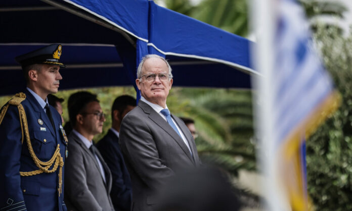 Ο κύριος Τασούλας μετά τη δοξολογία στον Ιερό Μητροπολιτικό Ναό Αγίας Τριάδας Μύρινας κατέθεσε στεφάνι στο Μνημείο Πεσόντων και μετά την παρέλαση έκανε την ακόλουθη δήλωση: