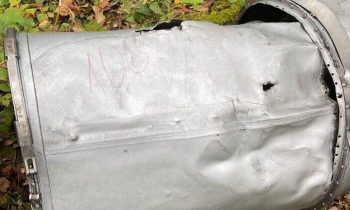 Φωτογραφίες από συντρίμμια που αναγνωρίστηκαν ως θραύσματα ενός νέου ουκρανικού πυραύλου Flamingo, ο οποίος φέρεται να καταστράφηκε από ρωσικά συστήματα αεράμυνας, εμφανίστηκαν στο διαδίκτυο.