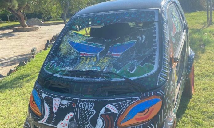 Ένα αυτοκίνητο που είχε μετατραπεί σε έργο τέχνης και κοσμούσε τον Κήπο της Μεσογείου, στη νέα παραλία Θεσσαλονίκης, βρέθηκε στο στόχαστρο βανδάλων το βράδυ της Παρασκευής (10/10).