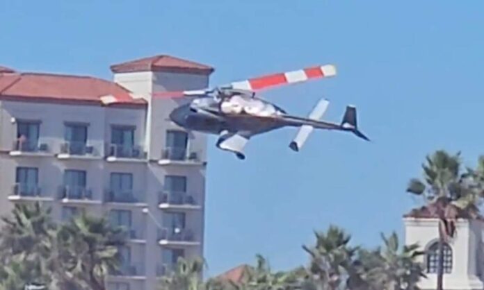 Οι εικόνες που κυκλοφόρησαν στα μέσα κοινωνικής δικτύωσης προκαλούν σοκ: βίντεο δείχνουν το ελικόπτερο να περιστρέφεται επανειλημμένα πριν συντριβεί σε φοίνικες και στη σκάλα της πεζογέφυρας που οδηγεί προς το Hyatt Regency Huntington Beach Resort and Spa.