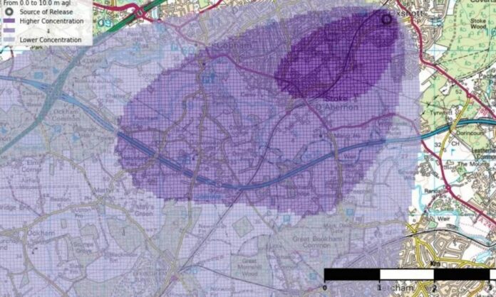 Οι κάτοικοι κλήθηκαν να σφραγίσουν επειγόντως τα παράθυρά τους, ενώ οι πυροσβέστες έσπευσαν στο σημείο του συμβάντος στο Σάρεϊ, νοτιοδυτικά του Λονδίνου.