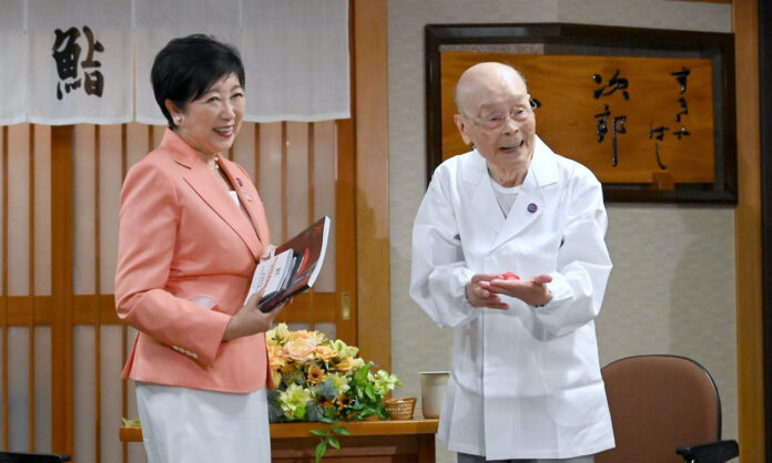 Ο Όνο, ο ιδρυτής του Sukiyabashi Jiro, ενός μικροσκοπικού σούσι μπαρ 10 θέσεων στο υπόγειο ενός κτιρίου στην πολυτελή συνοικία Ginza του Τόκιο, έγινε 100 ετών τη Δευτέρα.