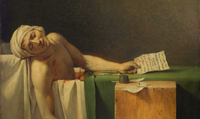 Το έργο του Ζακ-Λουί Νταβίντ, Ο θάνατος του Μαρά, είναι μια από εκείνες τις εικόνες που ξεγελούν το μάτι. Στην επιφάνειά του μοιάζει απλό: ο επαναστάτης Ζαν-Πολ Μαρά, δολοφονημένος μέσα στη μπανιέρα του, κρατά ακόμη το φτερό της πένας του στο χέρι. Όμως, όσο περισσότερο το παρατηρεί κανείς, τόσο περισσότερο καταλαβαίνει ότι πίσω από την ηρεμία του πίνακα κρύβεται ένα πολυεπίπεδο παζλ γεμάτο συμβολισμούς, υπονοούμενα και πολιτικά μηνύματα.