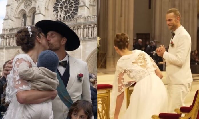 Ο 29χρονος τεχνίτης Μαρτέν Λόρεντς, ο οποίος πέρασε τρία χρόνια ανακατασκευάζοντας τον ναό, αντάλλαξε όρκους με τη σύζυγό του, Ζαντ στο ιστορικό μνημείο του Παρισιού