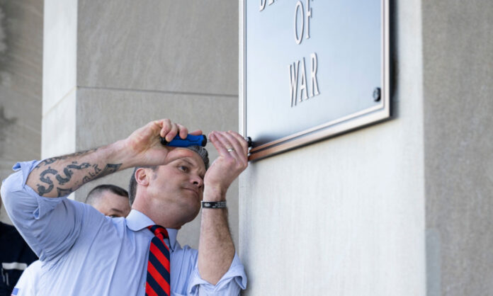 Τη μετονομασία του υπουργείου Άμυνας των ΗΠΑ σε υπουργείο Πολέμου «επισημοποίησε» ο Πιτ Χέγκσεθ, με την αντικατάσταση των παλιών χάλκινων επιγραφών στις εισόδους του Πενταγώνου στη Βιρτζίνια.