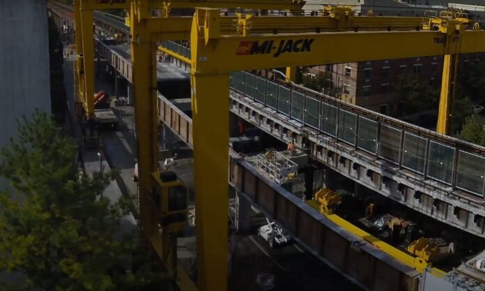 Το κλειδί για την επιτάχυνση ήταν η χρήση ενός τεράστιου υδραυλικού συστήματος γερανογέφυρας (gantry system). Για την πρώτη φάση, αυτό το σύστημα επέτρεψε την αφαίρεση της παλιάς υπερκατασκευής από σκυρόδεμα και χάλυβα και την αντικατάστασή της με προκατασκευασμένα στοιχεία. Κάθε νέο τμήμα ζύγιζε περίπου 86 τόνους (190.000 λίβρες) και παραδιδόταν πλήρως συναρμολογημένο, συμπεριλαμβανομένων των συνδετήρων γραμμής, της τρίτης ράγας και των προστατευτικών κιγκλιδωμάτων.