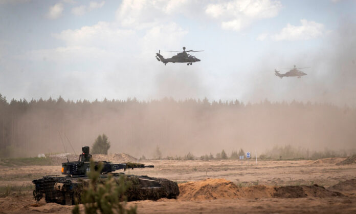 Ένα γερμανικό άρμα μάχης Leopard 2A6 στην κοινή στρατιωτική άσκηση με τη Λιθουανία «Grand Quartiga 2024», στις 29 Μαΐου 2024.
