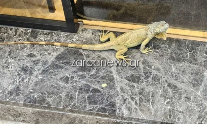 Αντιμέτωποι με ένα ασυνήθιστο θέαμα βρέθηκαν το μεσημέρι της Τετάρτης (19/11) οι κάτοικοι των Χανίων καθώς αντίκρισαν στην οδό Μπουνιαλή, στο κέντρο της πόλης, ένα τεράστιο ιγκουάνα να «κόβει» βόλτες μπροστά από εμπορικά καταστήματα.