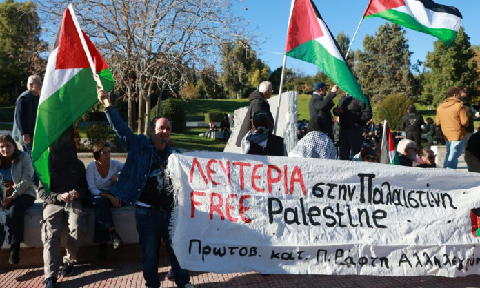 Συγκέντρωση υπέρ της Παλαιστίνης στο Πάρκο Ελευθερίας.