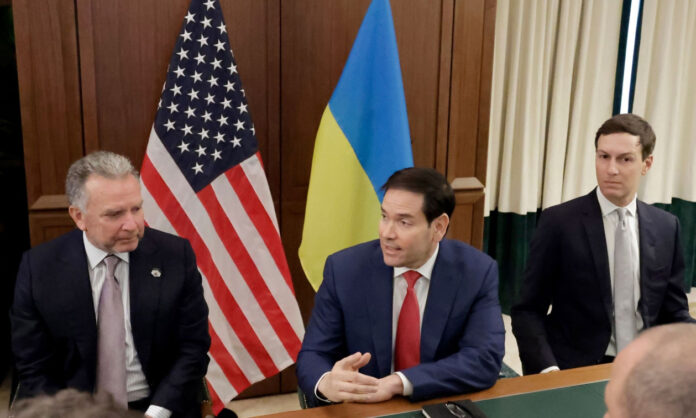 Της αμερικανικής ομάδας διαπραγματεύσεων ηγείται ο υπουργός Εξωτερικών Μάρκο Ρούμπιο, συνοδευόμενος από τον ειδικό απεσταλμένο του Ντόναλντ Τραμπ, Στιβ Γουίτκοφ, και τον Τζάρεντ Κούσνερ, γαμπρό του αμερικανού προέδρου.