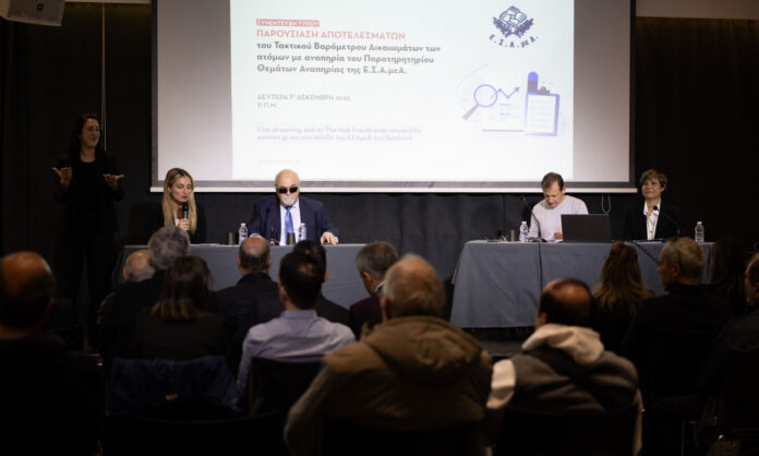 Παρουσιάστηκαν τα αποτελέσματα του 1ου Τακτικού Βαρόμετρου Δικαιωμάτων του Παρατηρητηρίου Θεμάτων Αναπηρίας της Ε.Σ.Α.μεΑ., που έλαβε χώρα πανελλαδικά από τις 7 Οκτωβρίου έως τις 3 Νοεμβρίου και σε δείγμα 2.716 άτομα με αναπηρία, χρόνιες ή/και σπάνιες παθήσεις, τη Δευτέρα 1 Δεκεμβρίου 2025.