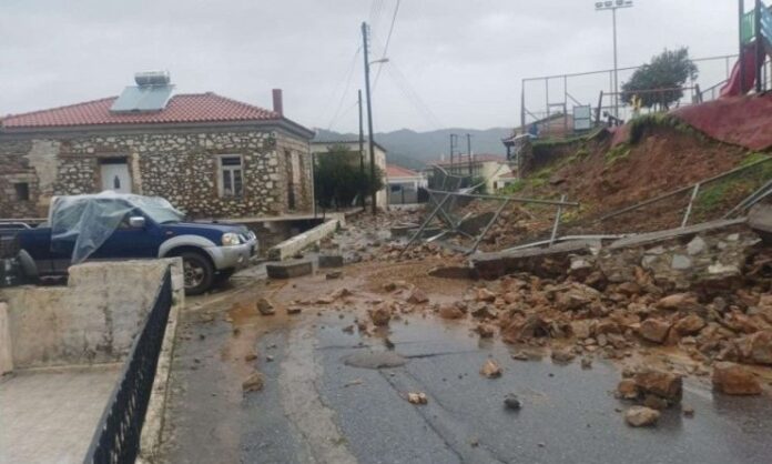 Όπως αναφέρει το lakonikos.gr τοίχος, που βρίσκεται στο πλάι της παιδικής χαράς, υπέστη υποχώρηση λόγω της διάβρωσης του εδάφους, παρασύροντας μαζί του μεγάλο όγκο από πέτρες, χώματα και τμήματα της μεταλλικής περίφραξης. Τα υλικά κύλισαν στον παρακείμενο δρόμο, τον οποίο και απέκλεισαν πλήρως, καθιστώντας αδύνατη τη διέλευση οχημάτων.