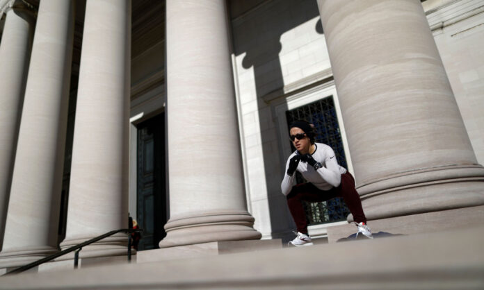 Πώς ελέγχουν αν κάποιος ολοκλήρωσε τα καθίσματα που πρέπει; Με τη βοήθεια μίας συσκευής «έξυπνης πόλης». Πρόκειται για ένα κιόσκι εξοπλισμένο με κάμερα, που σε παρακολουθεί καθώς αναλαμβάνεις την πρόκληση, που σημαίνει 20 καθίσματα σε λιγότερο από 2 λεπτά.