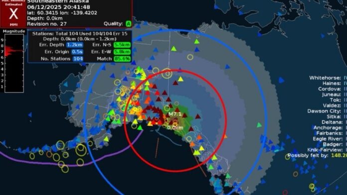 Ευτυχώς το επίκεντρο ήταν σε μια ορεινή και αραιοκατοικημένη περιοχή μεταξύ της Αλάσκας και του δυτικού άκρου του Καναδά