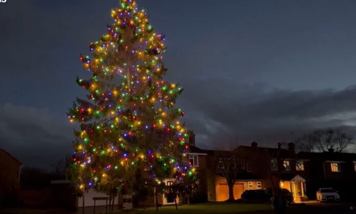 Μια πενθούσα χήρα απέτισε φόρο τιμής στον σύζυγό της που έφυγε από τη ζωή στολίζοντας ένα χριστουγεννιάτικο δέντρο που φύτεψαν το 1979 και που σήμερα έχει ύψος πάνω από 15 μέτρα.