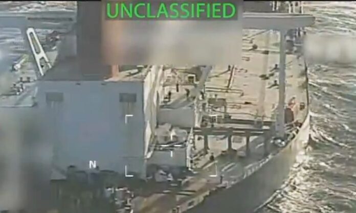 Η γενική εισαγγελέας των ΗΠΑ, Παμ Μπόντι, κοινοποίησε ένα βίντεο με Αμερικανούς στρατιώτες να εκτελούν ένταλμα κατάσχεσης του δεξαμενόπλοιου αργού πετρελαίου. Το βίντεο δείχνει ένα ελικόπτερο να αιωρείται λίγα μέτρα πάνω από το πλοίο καθώς οι δυνάμεις κατεβαίνουν γρήγορα πάνω σε σχοινιά.