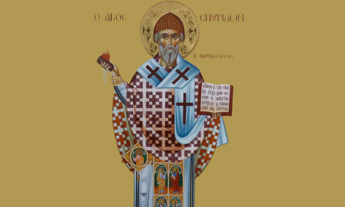 Σήμερα, Παρασκευή 12 Δεκεμβρίου, σύμφωνα με το εορτολόγιο του 2025 τιμάται η μνήμη του Αγίου Σπυρίδωνα