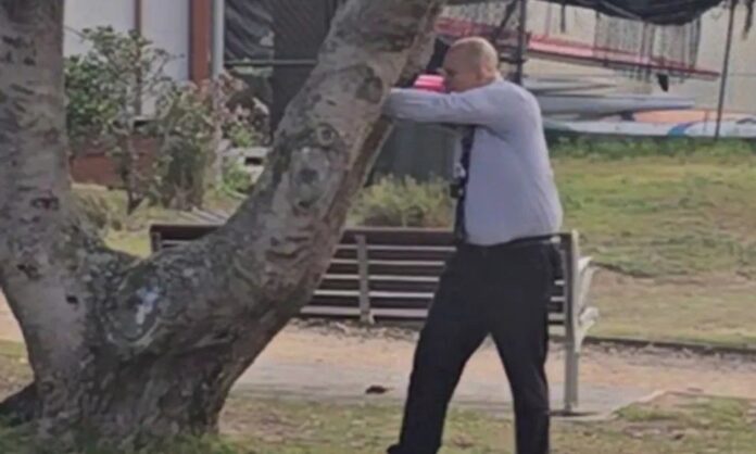 Σε νέο συγκλονιστικό βίντεο φαίνεται ο αστυνομικός με 15 χρόνια εμπειρίας στην Αστυνομική Δύναμη της Νέας Νότιας Ουαλίας, να βγαίνει από την κάλυψή του πίσω από ένα δέντρο, να πλησιάζει κρυφά τον πατέρα και τον γιο και στη συνέχεια να πυροβολεί θανάσιμα τον μεγαλύτερο σε ηλικία ένοπλο από απόσταση περίπου 40 μέτρων, σκοτώνοντάς τον με μία «μοναδική βολή».