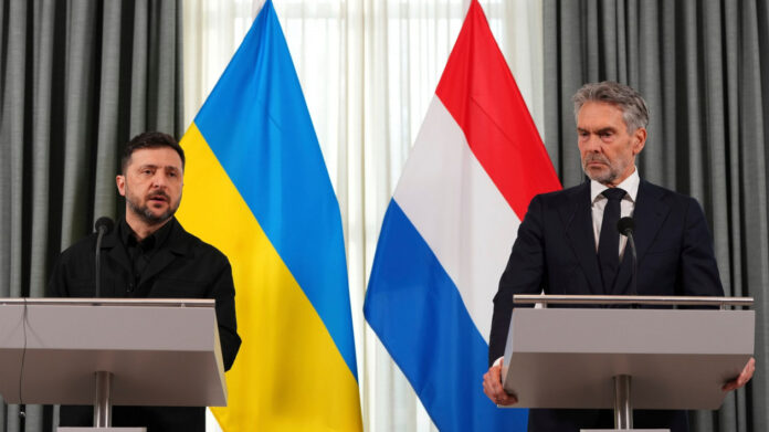 Μιλώντας στην Χάγη κατά την διάρκεια κοινής συνέντευξης Τύπου με τον υπηρεσιακό Ολλανδό πρωθυπουργό Ντικ Σχοφ, ο Ζελέσνκι είπε ότι η χρήση των ρωσικών δεσμευμένων περιουσιακών στοιχείων θα βοηθήσουν το Κίεβο να αντισταθμίσει την μείωση της υποστήριξης εκ μέρους ορισμένων από τους εταίρους του. «Δεν βλέπω την πιθανότητα να σταθούμε ισχυροί χωρίς αυτή την υποστήριξη», δήλωσε ο Ζελένσκι στους δημοσιογράφους.