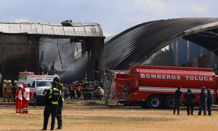 Το ιδιωτικό τζετ επιχείρησε αναγκαστική προσγείωσε σε γήπεδο ποδοσφαίρου στο Σαν Ματέο, Ατένκο — περίπου 40 χιλιόμετρα δυτικά της Πόλης του Μεξικού —αλλά προσέκρουσε σε αποθήκη και τυλίχθηκε στις φλόγες, σύμφωνα με το ABC7.