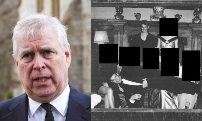 Ούτε η ημερομηνία ούτε η τοποθεσία της φωτογραφίας δόθηκαν στη δημοσιότητα, ωστόσο η «Mail on Sunday» αποκαλύπτει ότι αποτυπώνει μια ξέφρενη σκηνή από πάρτι που διοργάνωσε ο Άντριου για τον παιδόφιλο Τζέφρι Έπσταϊν και τη σύντροφό του, Γκισλέιν Μάξγουελ, στο Σάντριγχαμ στις αρχές Δεκεμβρίου του 2000, με αφορμή τα 39α γενέθλια της Μάξγουελ.