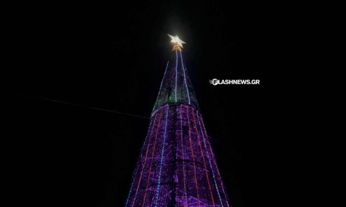 Φωταγωγήθηκε το απόγευμα της Κυριακής στον Ομαλό Χανίων σε υψόμετρο 1.250 μέτρων, το ψηλότερο χριστουγεννιάτικο δέντρο της Έλλαδας και ίσως ολόκληρης της Ευρώπης.