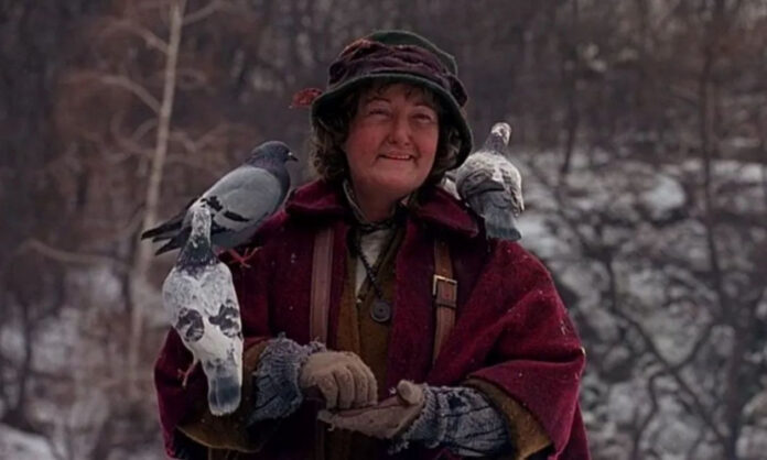 Μαζί με τον «στρατό» των περιστεριών της, πήρε τον ήρωα του Μακόλεϊ Κάλκιν υπό την προστασία της στην ταινία του 1992, την ώρα που οι «Υγροί Ληστές» τον καταδίωκαν στους δρόμους της Νέας Υόρκης.