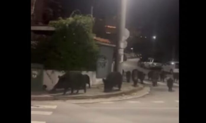 Αγέλη αγριογούρουνων, αποτελούμενη από περίπου 10 έως 15 ζώα, εντοπίστηκε να κινείται στους δρόμους του Πανοράματος στη Θεσσαλονίκη κατά τη διάρκεια της νύχτας, σε πολύ κοντινή απόσταση από κατοικίες, προκαλώντας ανησυχία στους κατοίκους της περιοχής, όπως περιγράφει το voria.gr.
