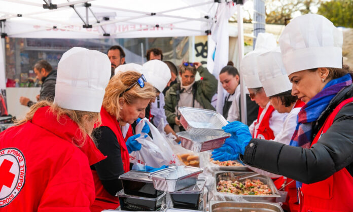 Ο Ελληνικός Ερυθρός Σταυρός, σε συνεργασία με την Λέσχη Αρχιμαγείρων Αττικής «Ακρόπολις», προσέφερε μια ζεστή αγκαλιά στους άστεγους συνανθρώπους μας, υλοποιώντας μεγάλη εορταστική δράση την Τρίτη (30/12) στο Θησείο, ενισχύοντας διακόσιους (200) ευάλωτους συμπολίτες μας με εορταστικά γεύματα και είδη προστασίας από τις χαμηλές θερμοκρασίες, παρουσία του Δρ. Αντώνιου Αυγερινού, του βουλευτή Επικρατείας και εθελοντή Σαμαρείτη – Διασώστη, Γιώργου Σταμάτη, της εκπροσώπου Τύπου της Νέας Δημοκρατίας, Αλεξάνδρας Σδούκου και του προέδρου της Λέσχης Αρχιμαγείρων Αττικής «Ακρόπολις», Κωνσταντίνου Μουζάκη.