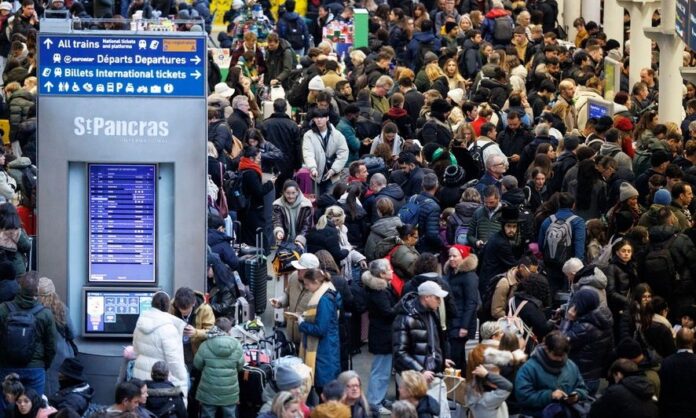 Εικόνες με τεράστια πλήθη εγκλωβισμένων ταξιδιωτών στον σταθμό St Pancras του Λονδίνου κατέκλυσαν τα μέσα κοινωνικής δικτύωσης μετά τη διακοπή ρεύματος της Τρίτης.