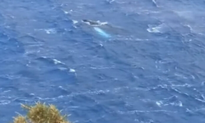 Η μεσαίου μεγέθους φάλαινα που κολύμπησε στα νερά του νησιού χάρισε ένα μοναδικό θέαμα σε όσους ήταν παρόντες.