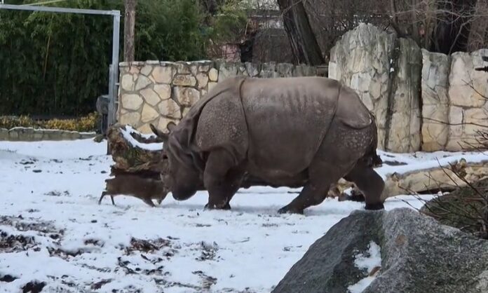 Στον ζωολογικό κήπο του Βρότσλαβ στην Πολωνία, ένα μικροσκοπικό ελάφι, το οποίο ζυγίζει μόλις 13 κιλά, κατάφερε να «κλέψει» τις εντυπώσεις αντιμετωπίζοντας έναν ρινόκερο σχεδόν 1,7 τόνων.