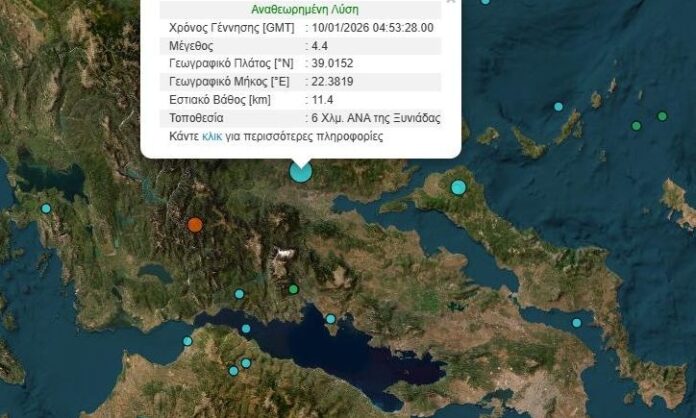 Σεισμός 4,4 Ρίχτερ με επίκεντρο στην Ξινιάδα Δομοκού, σημειώθηκε τα ξημερώματα, σήμερα Σάββατο.