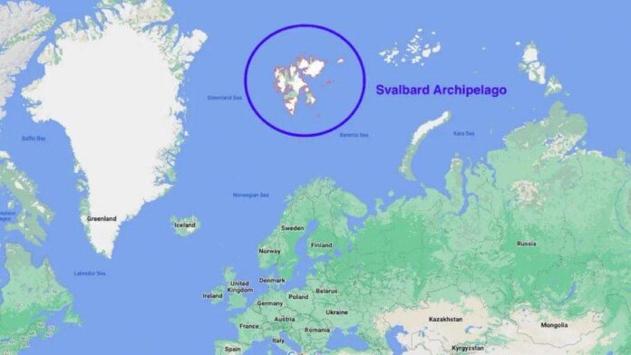 Αυτή είναι η Νορβηγία. Στην κυριαρχία της οποίας – αλλά υπό ένα ιδιαίτερο νομικό καθεστώς – βρίσκονται τα νησιά του Αρχιπέλαγους Σβάλμπαρντ. Στα οποία η Ρωσία έχει «ειδική πρόσβαση» και βρίσκονται απέναντι ακριβώς από το μήλον του έριδος μεταξύ των ΗΠΑ και της ΕΕ, την Γροιλανδία.
