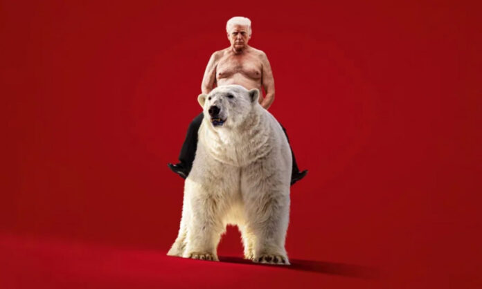 Για να αναδείξει συμβολικά την αμερικανική πίεση και υπεροχή στο θέμα τοποθέτησε τον Ντόναλντ Τραμπ χωρίς μπλούζα πάνω σε μία πολική αρκούδα. Με αυτόν τον τρόπο θέλει να αναδείξει ότι ο Αμερικανός πρόεδρος έχει κυριαρχήσει στο θέμα της Γροιλανδίας, όπως έχει εξημερώσει μία πολική αρκούδα.