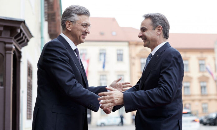 O πρωθυπουργός Κυριάκος Μητσοτάκης συναντήθηκε με τον Κροάτη ομόλογό του Αντρέι Πλένκοβιτς στο Ζάγκρεμπ, όπου συνεδριάζουν σήμερα και αύριο οι ηγέτες του Ευρωπαϊκού Λαϊκού Κόμματος.