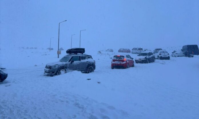 Εγκλωβισμένοι εδώ και αρκετές ώρες παραμένουν 100 και πλέον επισκέπτες του Χιονοδρομικού Κέντρου Φαλακρού στη Δράμα.